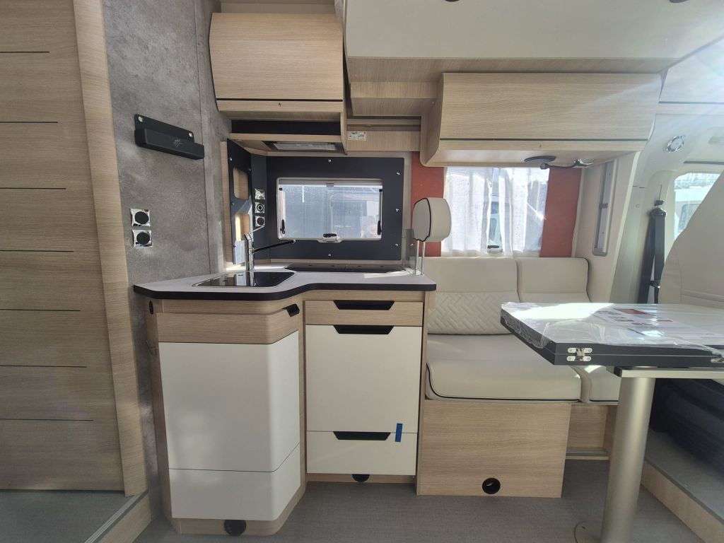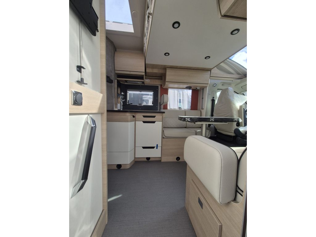 En Yakart Autocaravanas en la sede de La Coruña tenemos disponible, del grupo Rápido, la autocaravana perfilada 696F modelo 2025 con cambio automático. Compacta pero con todo lo necesario para que pequeñas familias puedan disfrutar de ella en cualquier momento. Su distribución se compone de cama isla, salón enfrentado, baño y ducha independientes y cama doble eléctrica en techo.