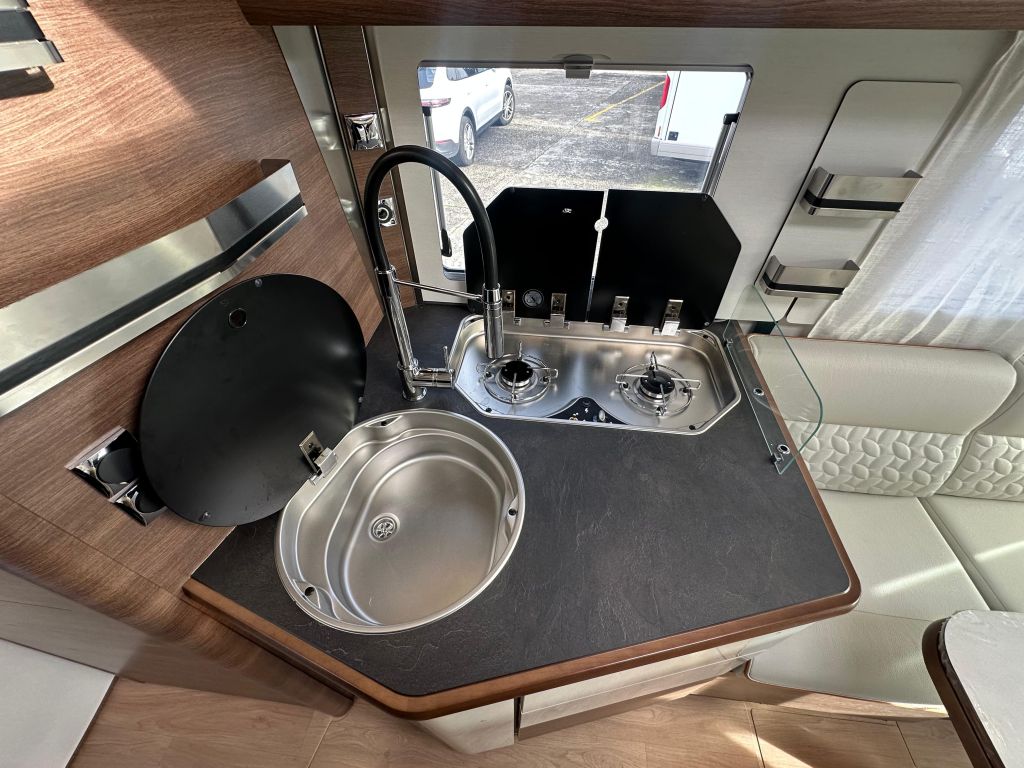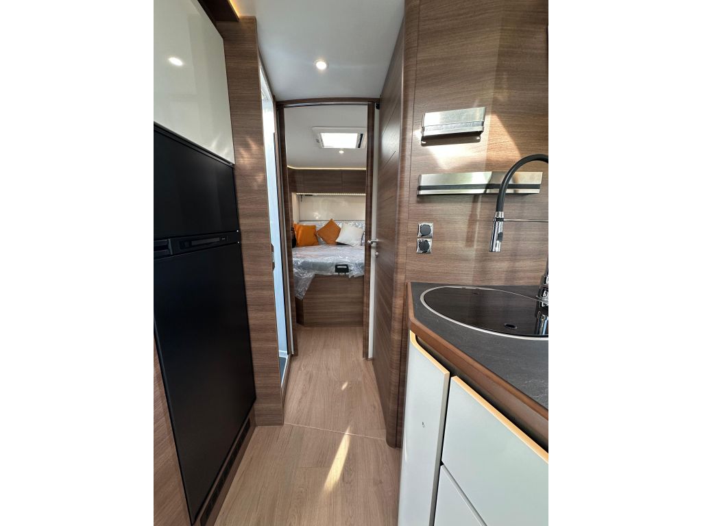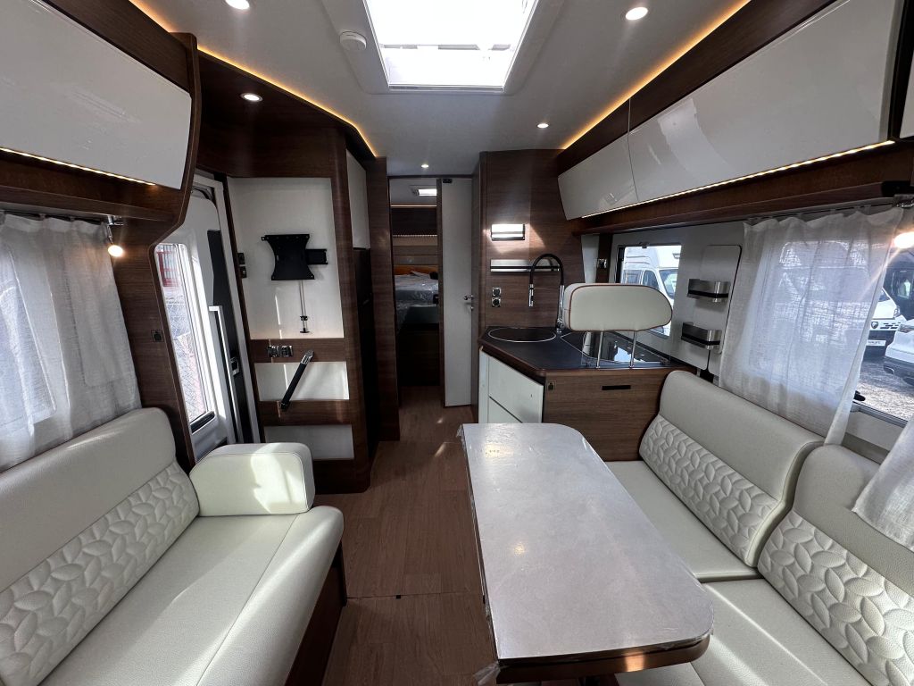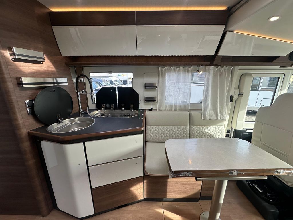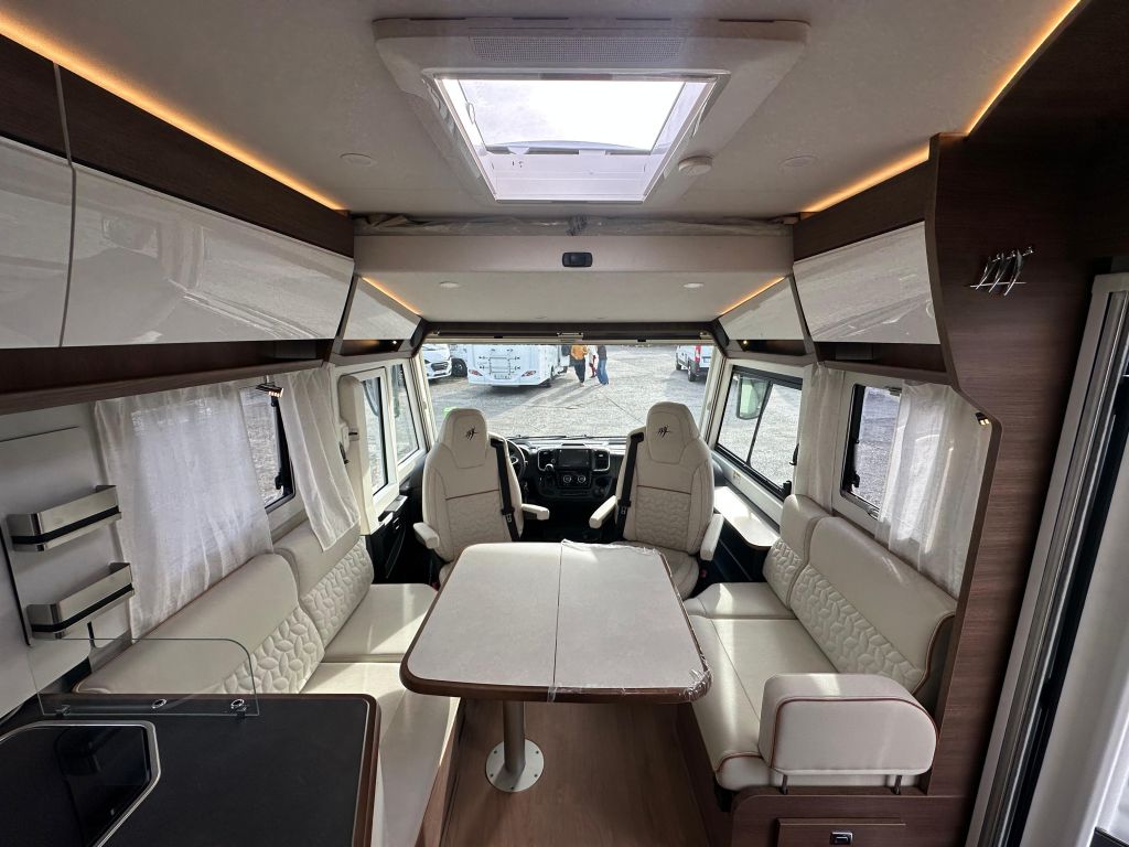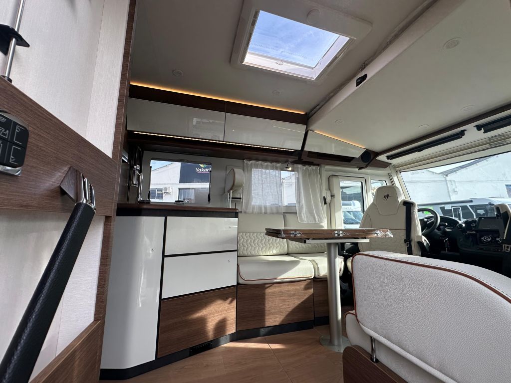 Disfruta de una gran luminosidad natural gracias a sus amplios ventanales y tapicerías claras, creando un ambiente espacioso y acogedor. La distribución, con cama isla regulable en altura (hasta 30 cm), mesa tipo libro y salón enfrentado, ofrece el equilibrio perfecto entre comodidad y estilo.